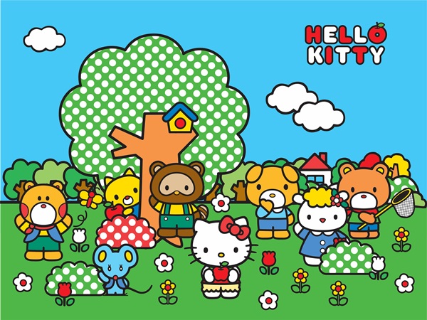 Etiquetas: fotomural infantil, mural infantil Hello Kitty, mural pared Hello Kitty y amigos, fotomural Hello Kitty en el campo, mural Hello Kitty y amigos en el bosque, fotomural Hello Kitty grande