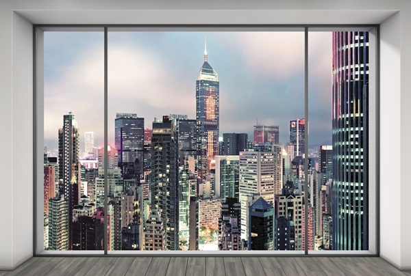 Etiquetas: fotomural Komar, mural Vlies, fotomural ciudad iluminada, mural ciudad de noche, fotomural ventanal con vistas a una gran ciudad
